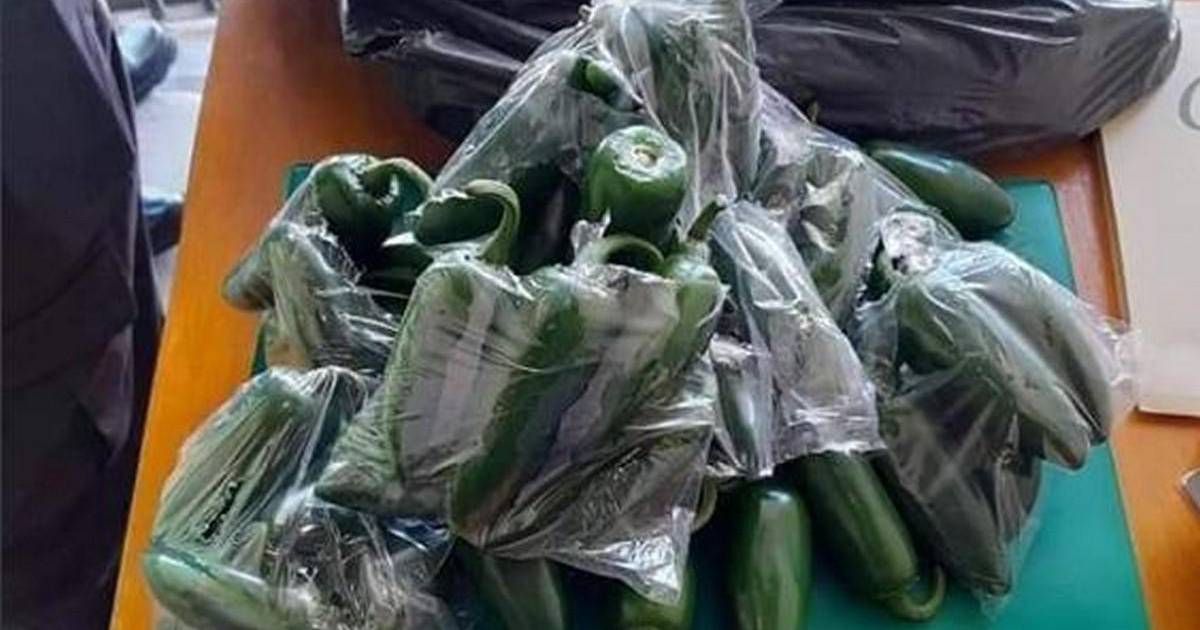 La droga iba perfectamente oculta en los chiles que había sido vaciados de sus semillas y en su lugar estaban rellenos de marihuana.