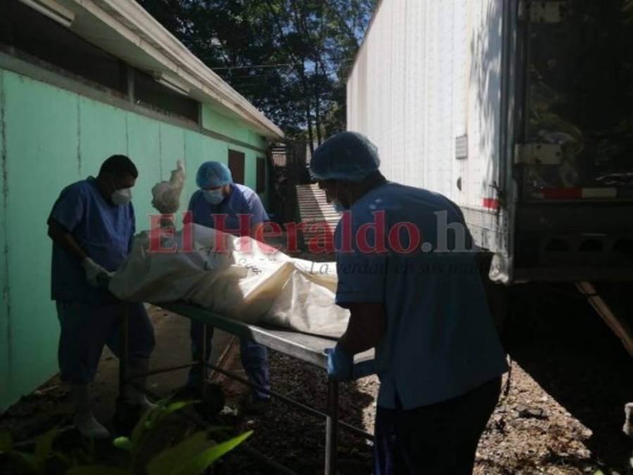 El cuerpo de la joven fue retirado el mediodía de este martes por sus familiares quienes la trasladarán hacia La Esperanza, Intibucá, donde será velada y posteriormente darle cristiana sepultura. Fotos: Estalin Irías/EL HERALDO. 09/02/2021 - 00:001 / 8 -
