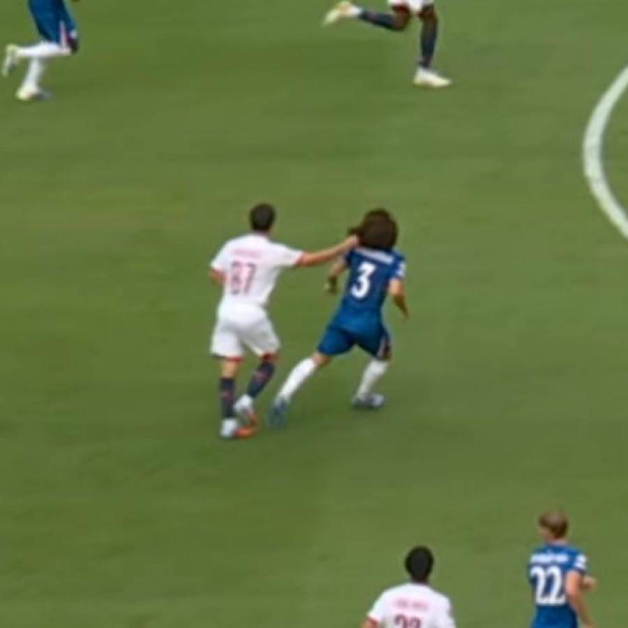 Joao Neves tuvo este feo gesto con Cucurella y le jaló el pelo.