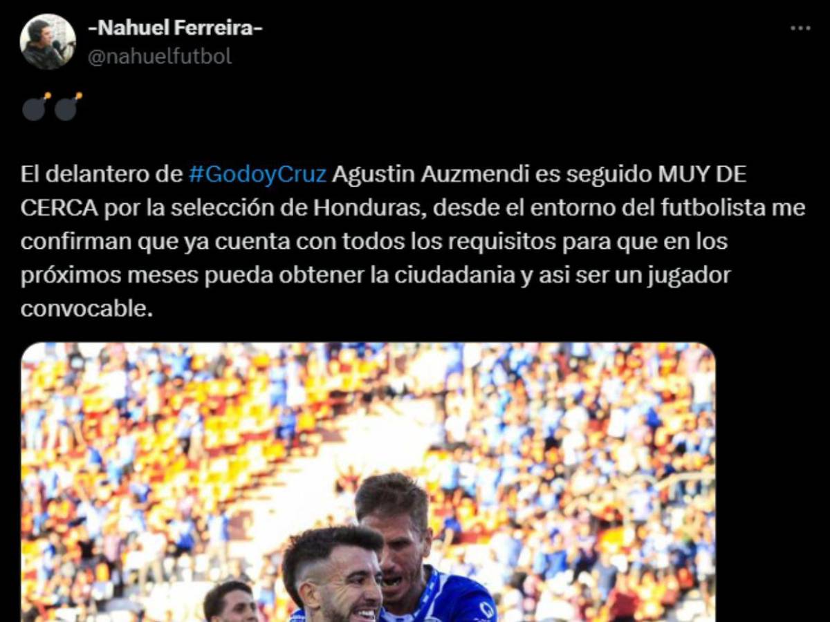 De acuerdo al periodista argentino, Nahuel Ferreira, informó que hay acercamientos de Agustín Auzmendi con la Selección de Honduras.