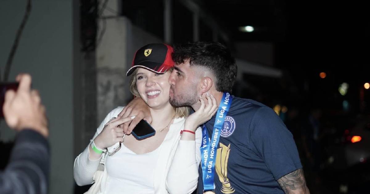 Su novia Cecilia García fue otra de las personas que lo acompañó en los festejos tras lograr el campeonato.