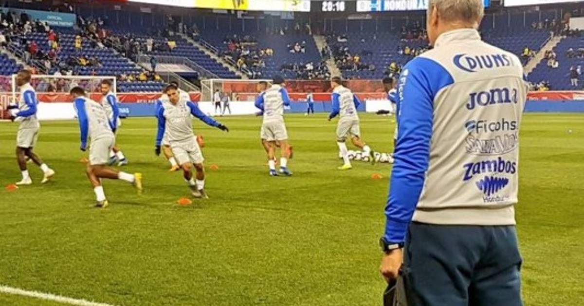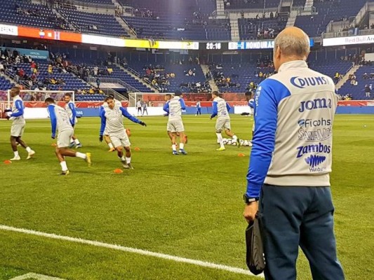 El técnico de la H observa a los catrachos calentar antes de que se escuche el pitazo inicial del partido. (Foto: Twitter Selección Nacional de Honduras) 26/03/2019 - 00:001 / 4 -