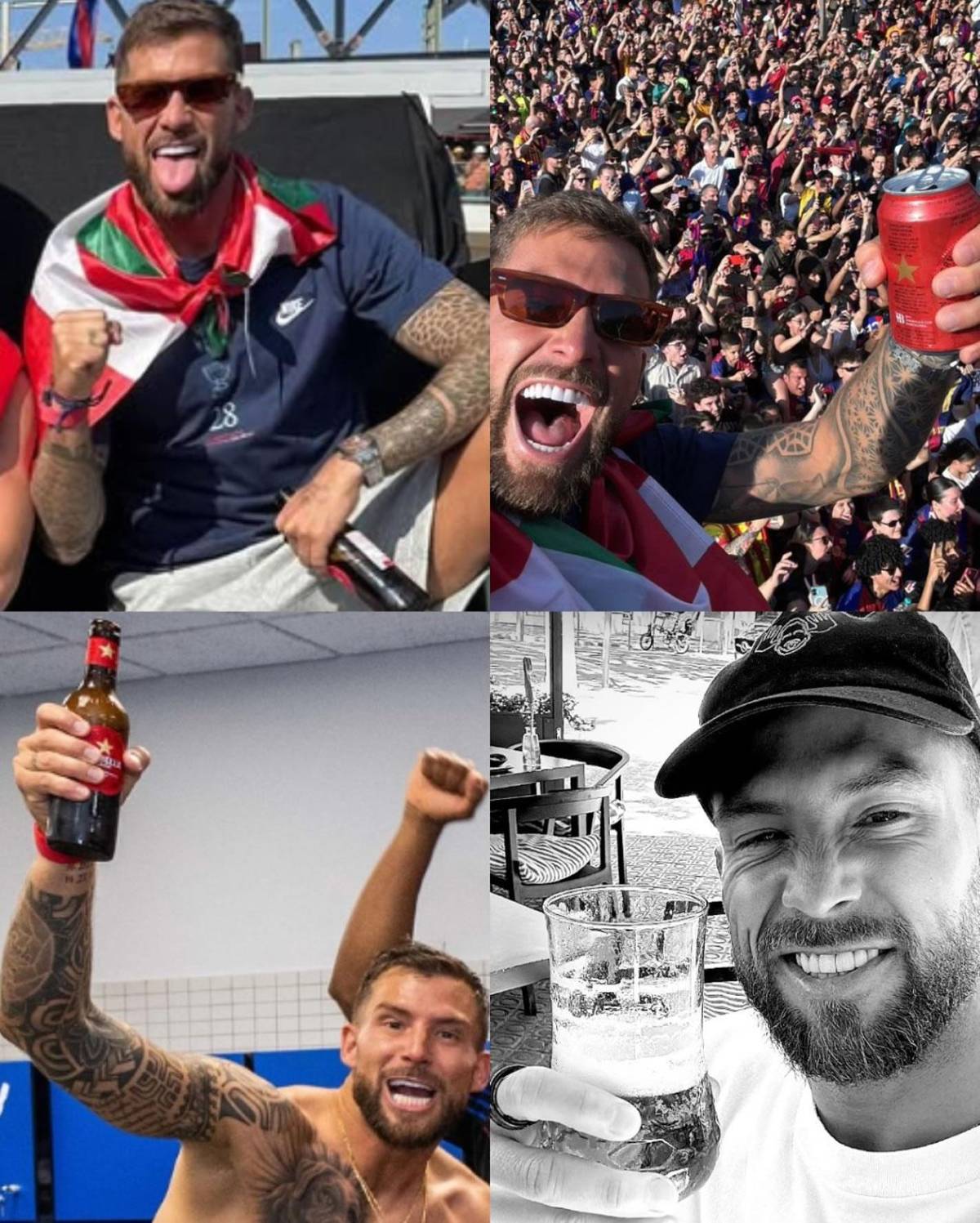 Iñigo Martínez apareció bebiendo la cerveza de uno de los patrocinadores del club, la cervecera Estrella Damm. El defensa central fue uno de los que más celebró en la rúa y lo hizo al estilo de Jack Grealish, el jugador del Manchester City.