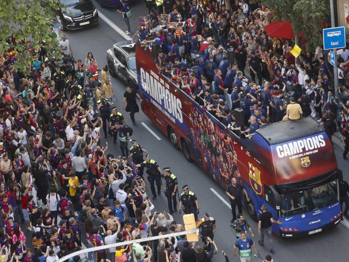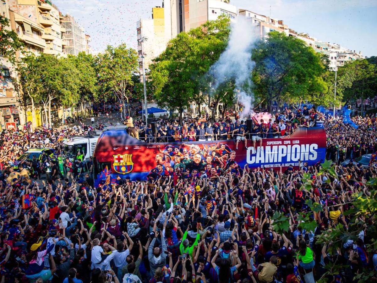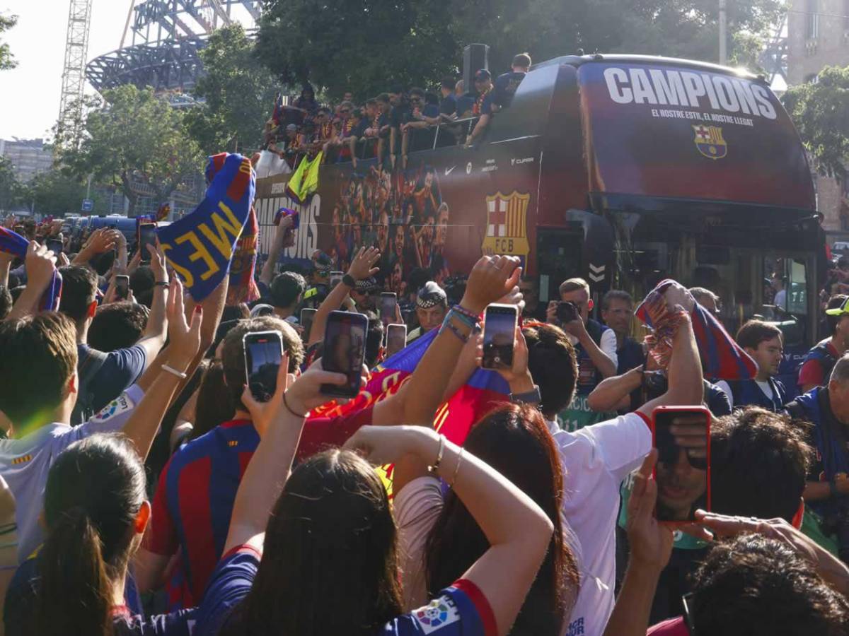 La ciudad de Barcelona se ha lanzado a las calles para festejar con los jugadores y el cuerpo técnico del Barça tras ganar el título de la Liga Española.