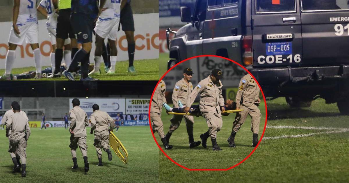 El jugador del Motagua fue llevado en una camilla por parte del benemérito cuerpo de bombero de Danlí.