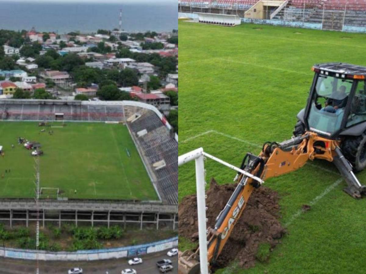 Las máquinas comenzaron los trabajos de remoción del engramillado del Estadio Ceibeño. El recinto se convertirá en el tercero en Honduras con grama híbrida.
