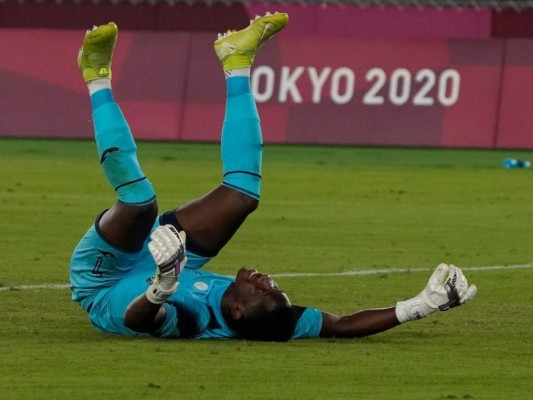 Alex Güit cayó tendido al suelo luego de culminar los 90 minutos. El arquero catracho fue fundamental para que no cayeran más goles surcoreanos. 28/07/2021 - 00:0017 / 17