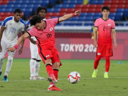 Hwang Ui-Jo inició la fiesta de goles a minuto 12 tras anotar desde la vía penal. Era el 1-0 a favor de los asiáticos. 28/07/2021 - 00:005 / 17 -
