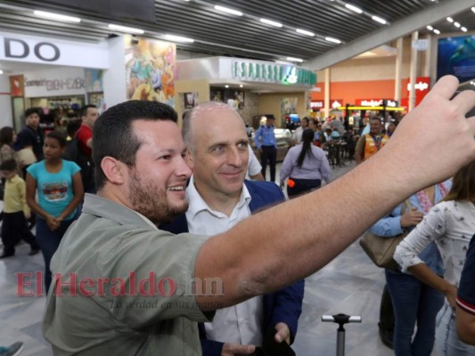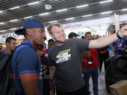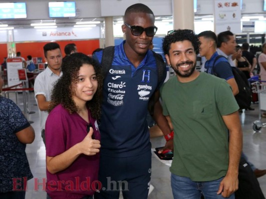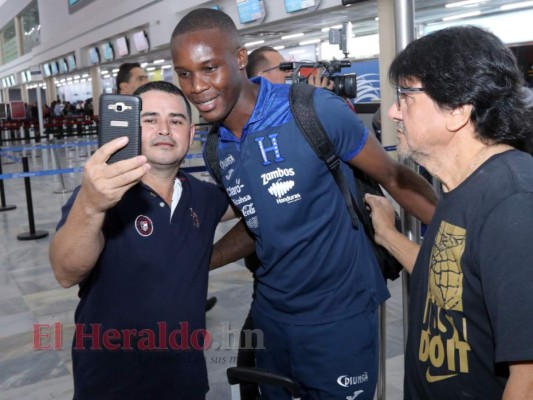 Rubilio Castillo, delantero de Honduras, no se negó a dar una selfie a los aficionados catrachos previo al viaje para el amistoso. Foto: El Heraldo 24/03/2019 - 00:0010 / 16 -