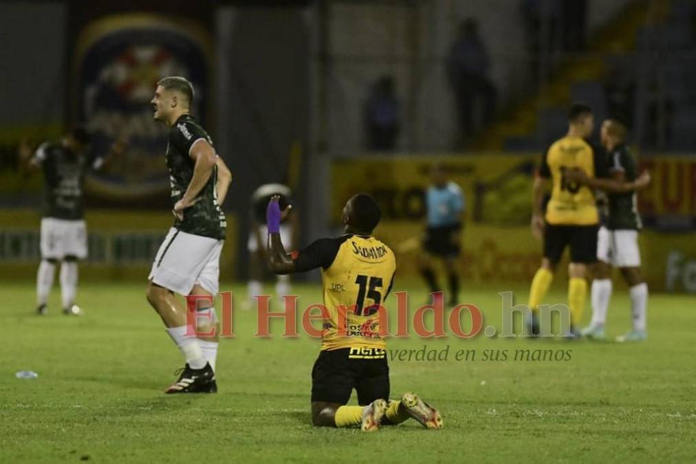 Ramiro Rocca, del Real España, fue a consolar a su compatriota Lucas Campana de Marathón.