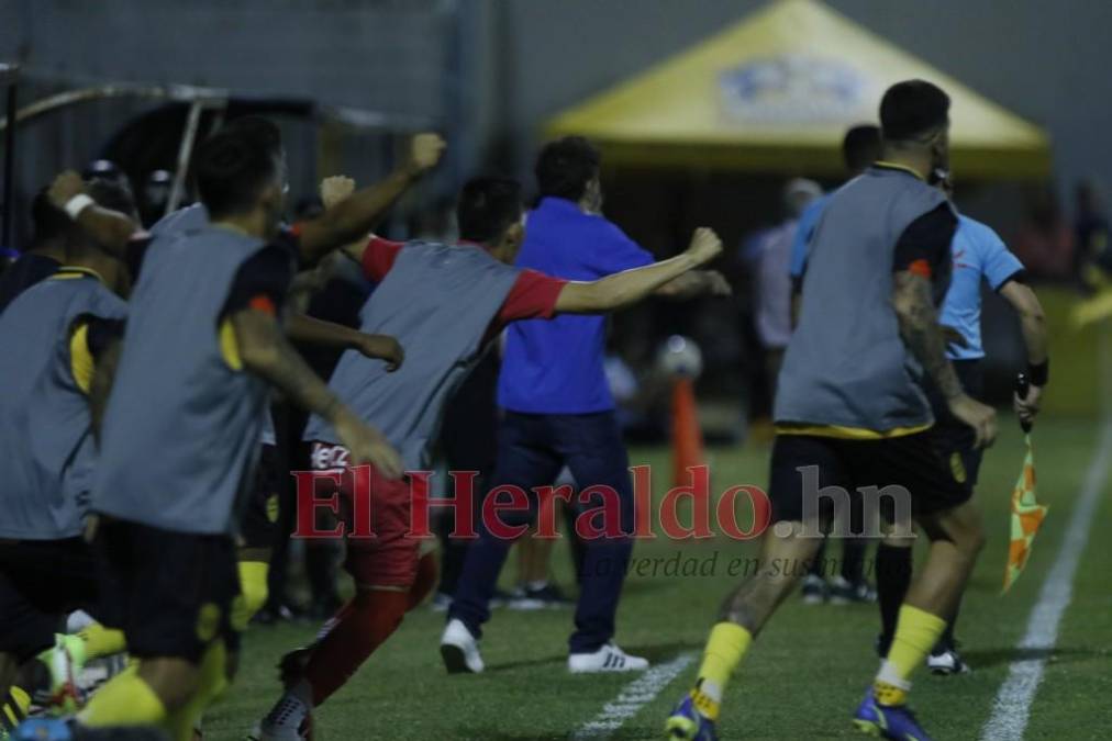 La banca del Real España saltó de emoción con el golazo de Júnior Lacayo.
