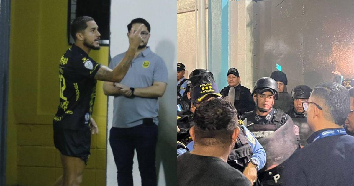 Te damos a conocer algunas imágenes que no se vieron en TV luego del Rea España vs Motagua. Emilio Izaguirre tuvo que salir del estadio para hablar con la Policía Nacional y aurinegros atizaron contra su equipo.