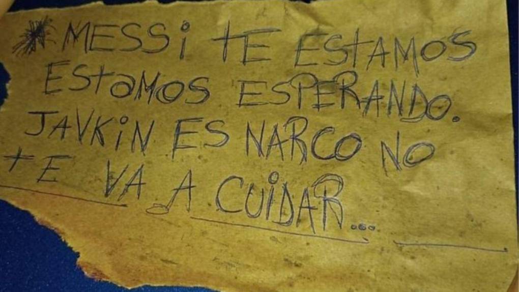La amenazante nota decía: “Messi, te estamos esperando. Javkin también es narco, no te va a cuidar”.