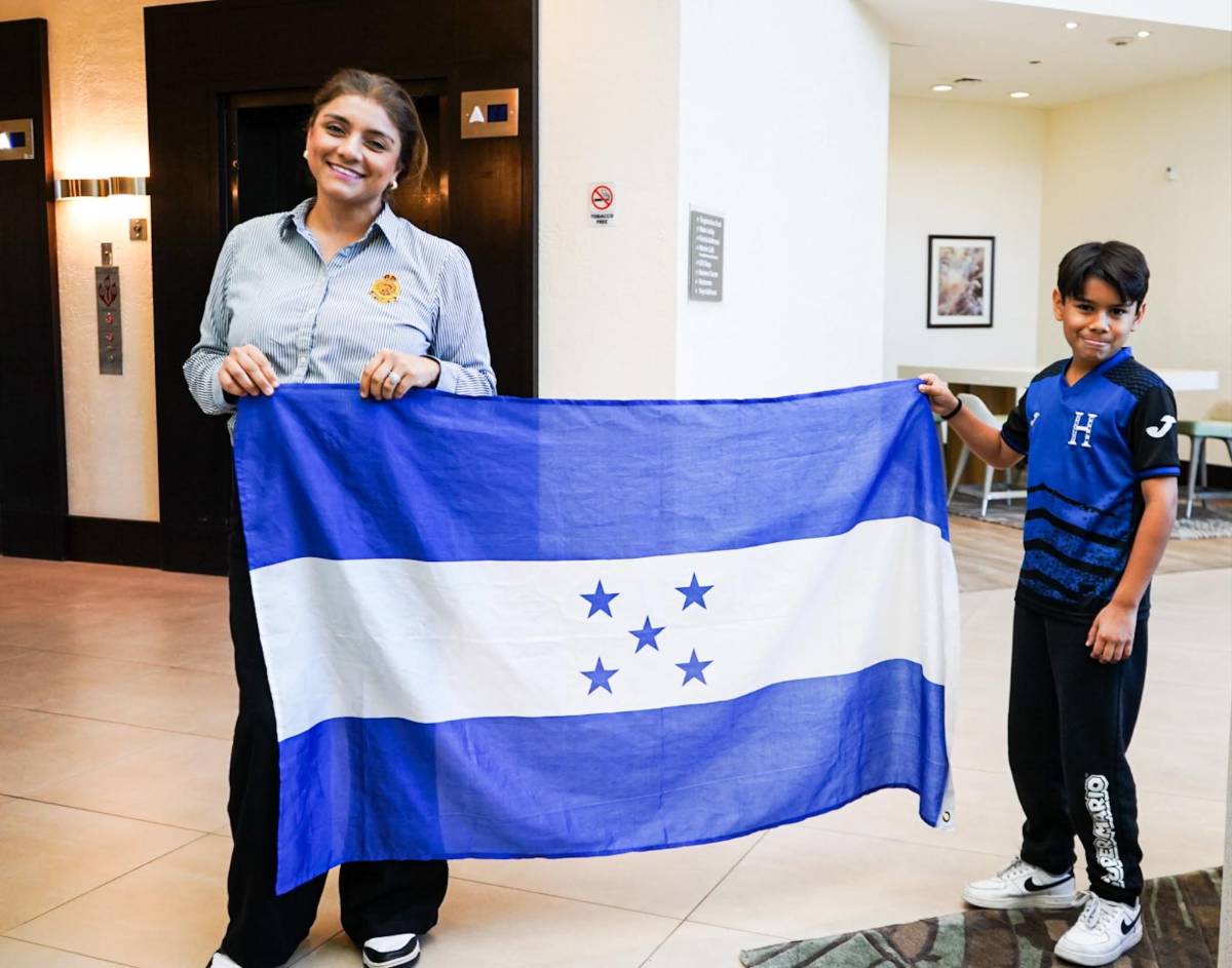 El chico portaba la camiseta de Honduras y no escondió su felicidad al ver a los seleccionados catrachos.