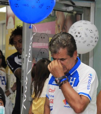 Los jugadores y cuerpo técnico de la Selección de Honduras llegaron a la sala de los niños con cáncer y brindarles su apoyo (Foto: Delmer Martínez) 12/11/2016 - 00:001 / 6 -