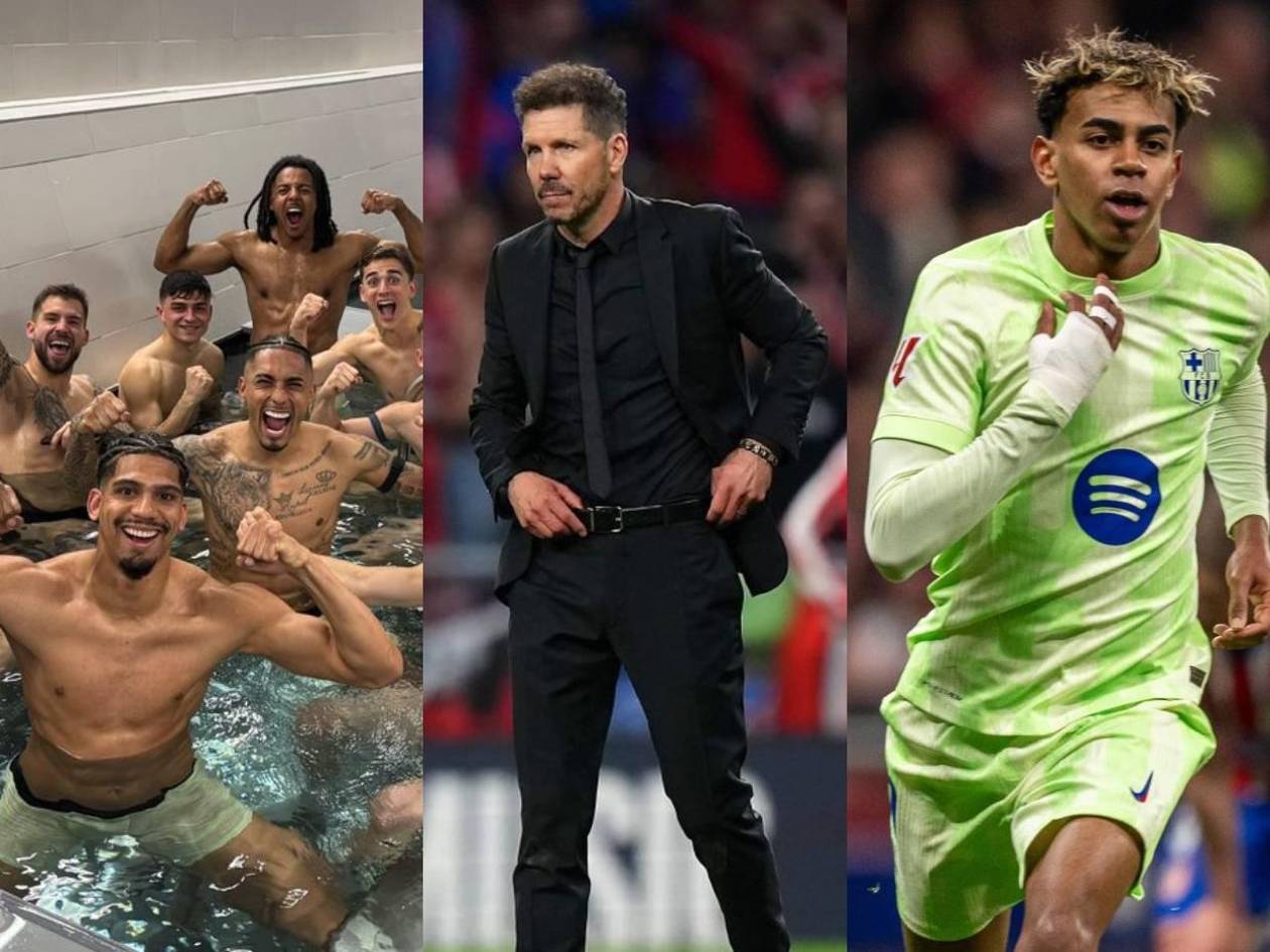 Simeone desencajado, el golazo de Lamine Yamal y celebración de los jugadores del Barcelona