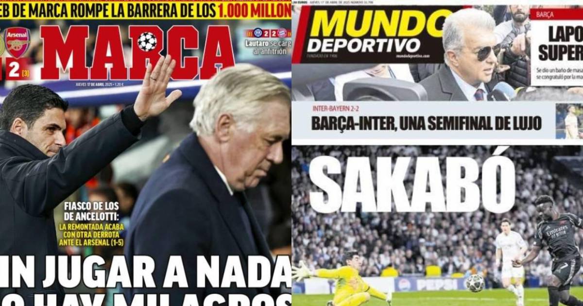 Real Madrid fue humillado por el Arsenal con marcador global de 1-5 en los cuartos de final de la Champions League. Así amanecieron las portadas tras la eliminación Merengue.