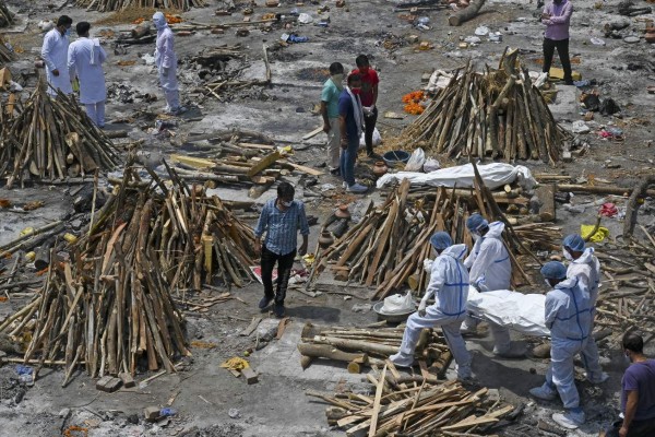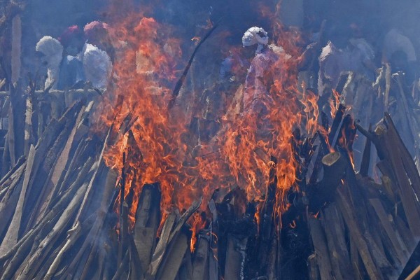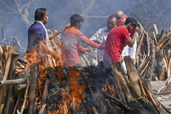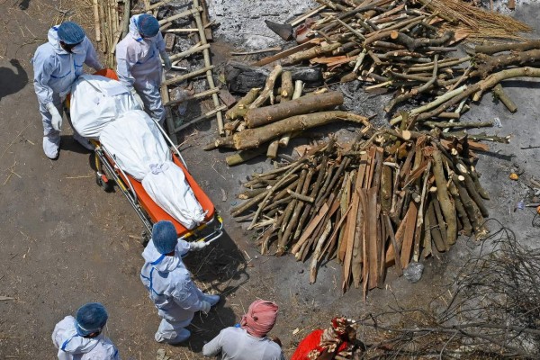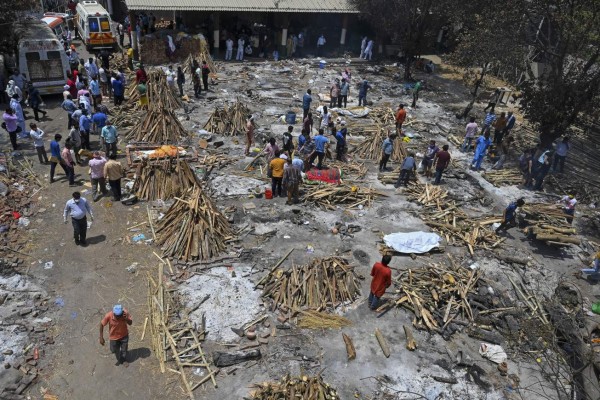 Las desgarradoras imágenes de los crematorios en India colapsados por covid