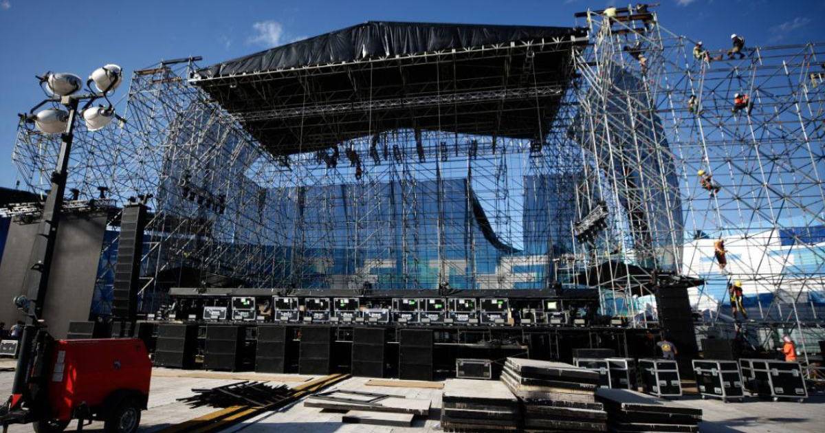 Este miércoles las productoras organizadoras del evento ultimaron los últimos detalles como las luces que adornan el escenario.