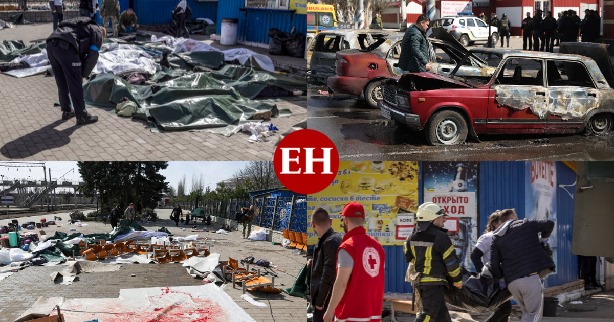 Al menos 39 civiles murieron este viernes cuando un misil cayó en la estación de la ciudad de Kramatorsk, en el este de Ucrania, una zona de la que miles de civiles están huyendo por miedo a una ofensiva rusa inminente. Las imágenes catastróficas y dantescas que dejó el atentado de mujeres y hombres muertos fue calificado como una “maldad sin límites” por parte del presidente ucraniano. Aquí algunas fotografías.