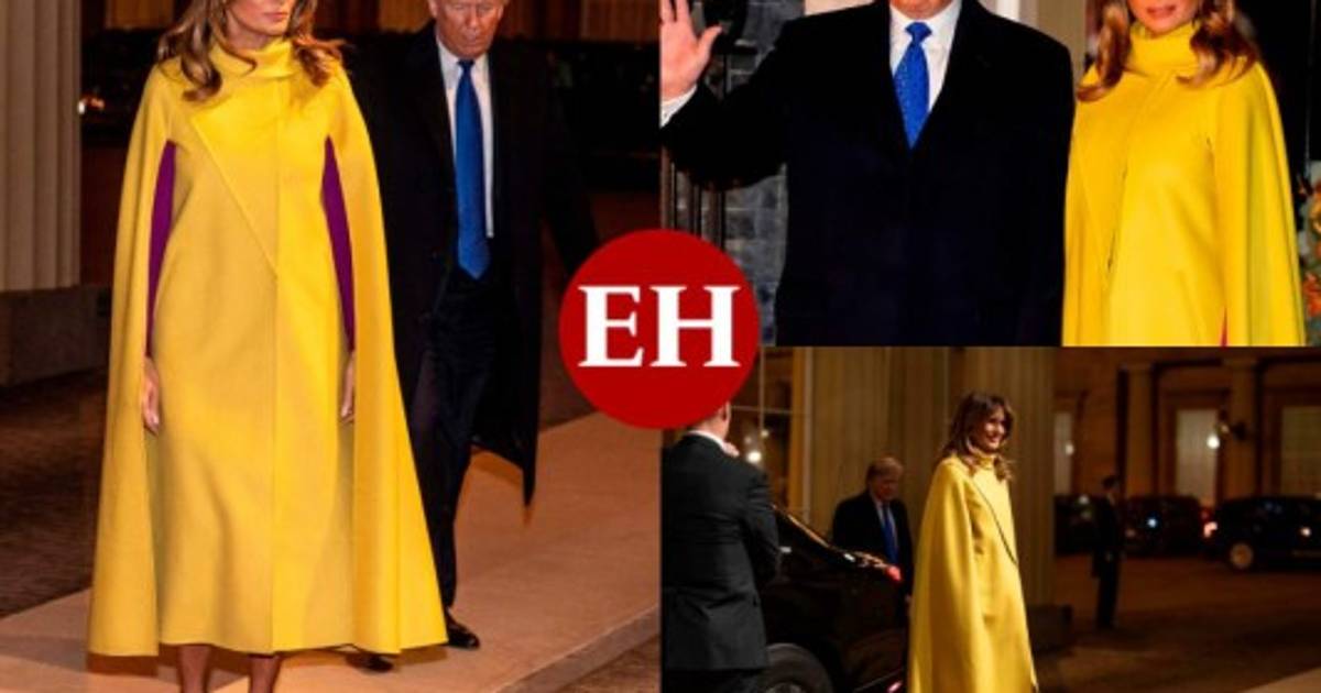 Melania utilizó un abrigo de capa larga color amarillo mostaza combinada con un vestido y zapatos color fucsia. Foto: AFP 03/12/2019 - 00:005 / 11 -
