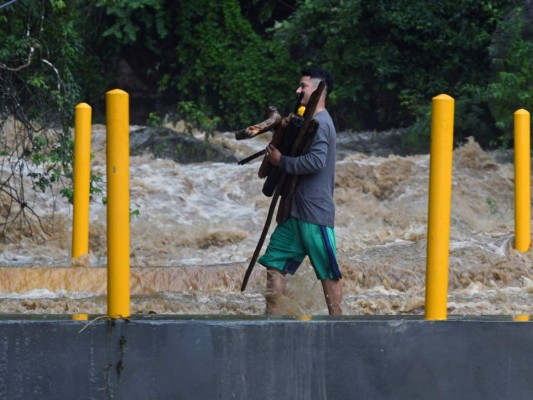 El departamento de Yoro se encuentra en alerta roja por las intensas lluvias que se han registrado provocadas por el huracán Eta. Foto: AFP 03/11/2020 - 00:004 / 16 -