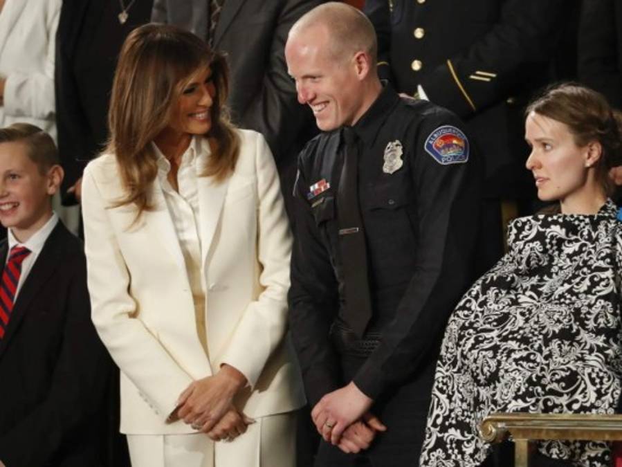 La Primera Dama de Estados Unidos aplaude ante reconocimiento a Oficial de Policía Ryan Holets, su esposa, Rebecca, y su hija adoptiva, Hope. 30/01/2018 - 00:0011 / 11