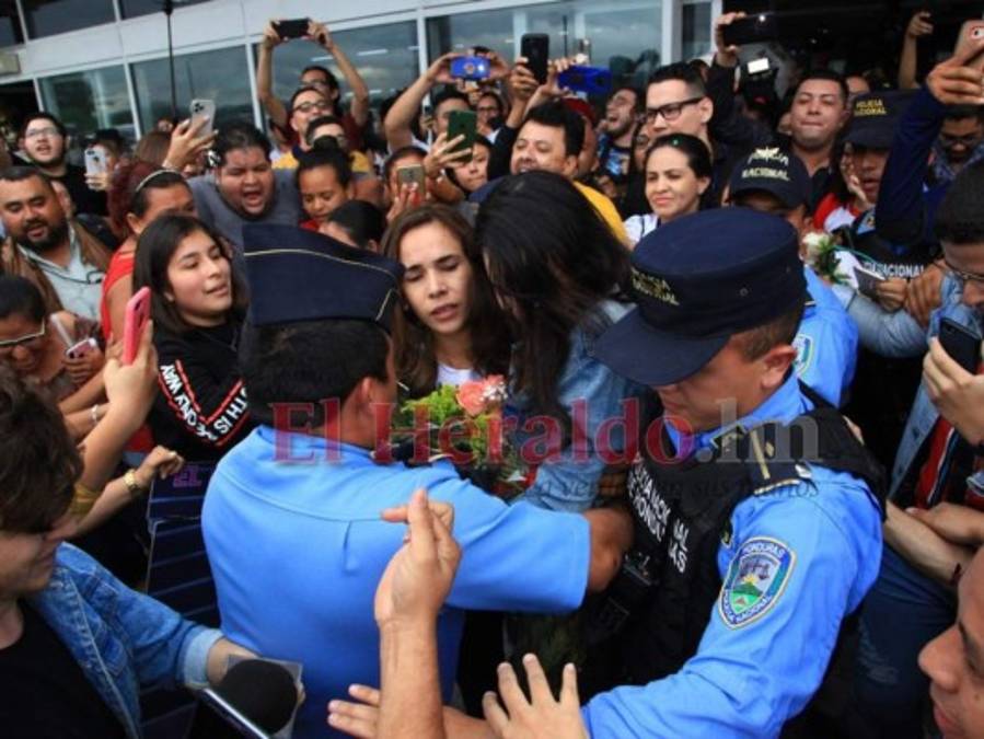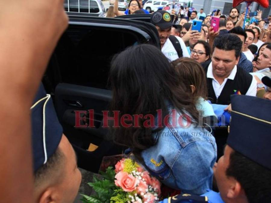 Desde el momento de su arribo al aeropuerto fue coronada oficialmente como 'la reina de Honduras', título con el que fue bautizada en La Academia. Foto: EL HERALDO 27/02/2020 - 00:006 / 13 -