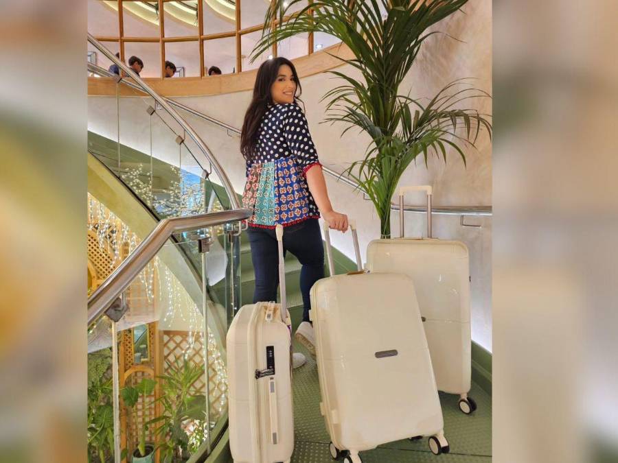 También posteó algunas fotos junto a su equipaje y luciendo muy cómoda con su atuendo para el largo viaje hacia España.