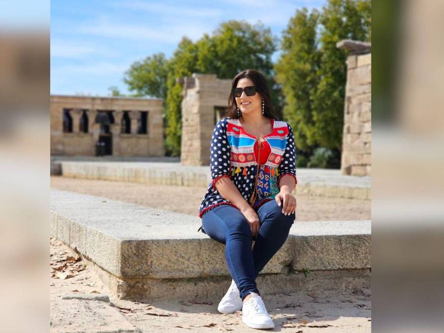 Carolina también tuvo tiempo para posar en hermosos paisajes, como esta fotografía, donde se le ve en el Templo Debod, en Madrid, la capital de España.