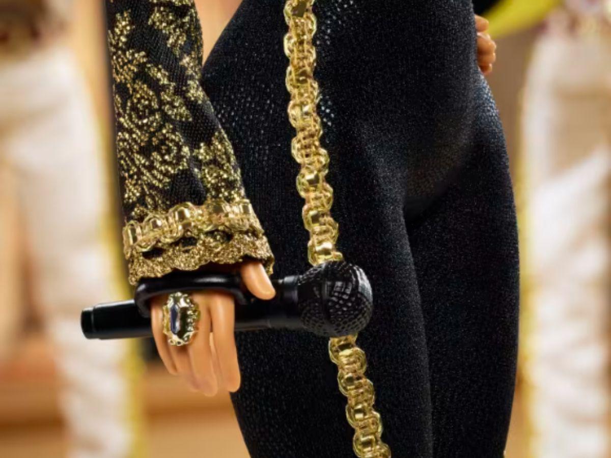 La muñeca trae un micrófono, un accesorio indispensable del artista mexicano que se convirtió en una leyenda de la música.