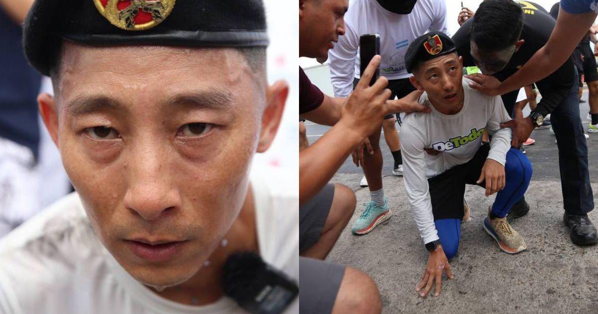 Durante un tramo, Shin no soportó más el dolor y tuvo que ser cargado en hombros por un cadete de policía.