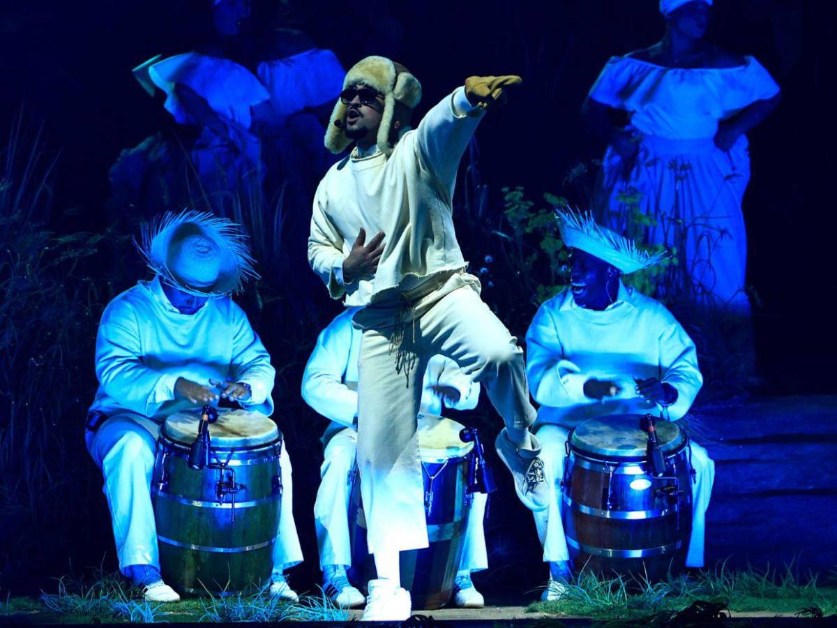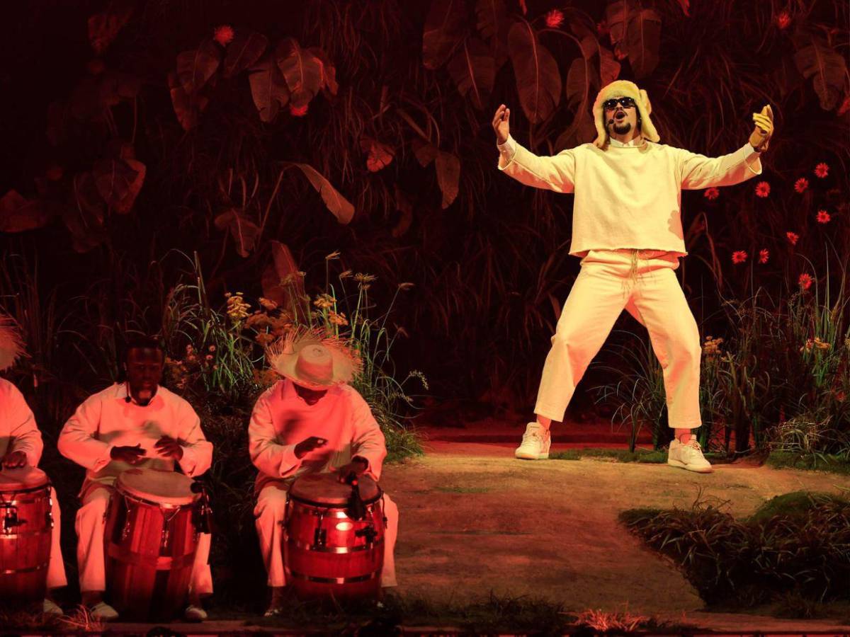 El espectáculo se inició con una representación teatral con la actuación de Julito Gastón, percusionista de Bad Bunny, elogiando el sonido de los barriles de la bomba puertorriqueña, un género musical autóctono que tiene sincretismo de la cultura taína, africana y española y que nació entre los esclavos.