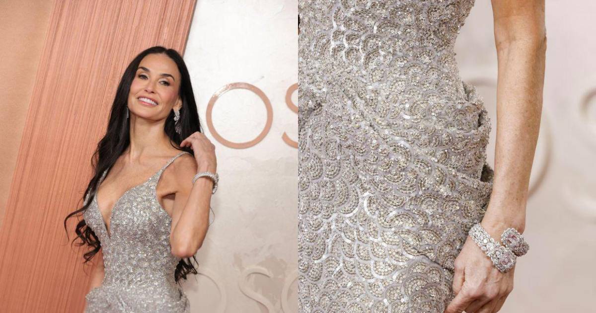 La bella actriz Demi Moore brilló en la alfombra roja de los Premios Oscar 2025. Aquí su look con un impresionante vestido lleno de cristales