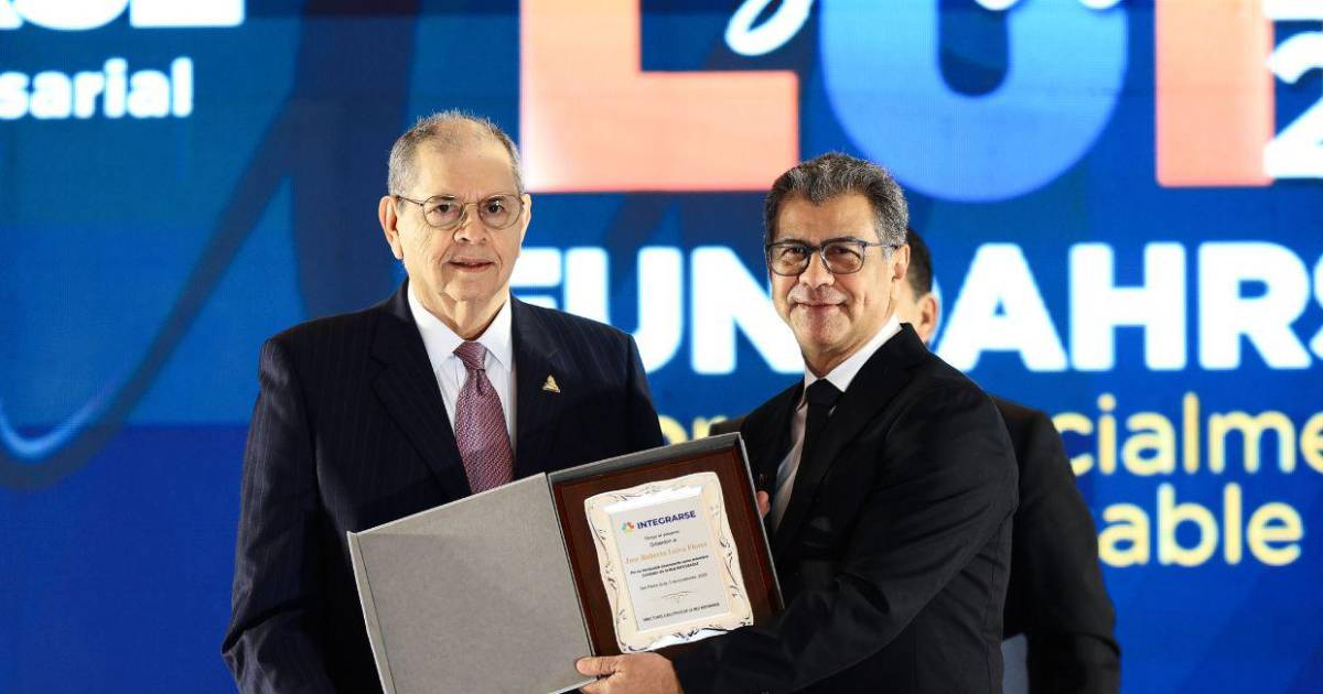 José Roberto Leiva con su cuadro honorífico, por su invaluable trabajo al frente de FUNDAHRSE por muchos años. Él fue el homenajeado de la gala, quien recibió la potente ovación del público.