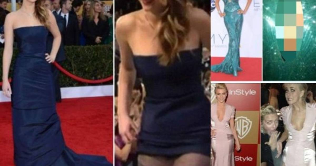 Jennifer Lawrence en la entrega de los SAG en 2013, perdió una parte de su vestido, este se le desgarró cuando subía al escenario para recibir un premio. La actriz fue víctima de infinidad de memes que inundaron la red.