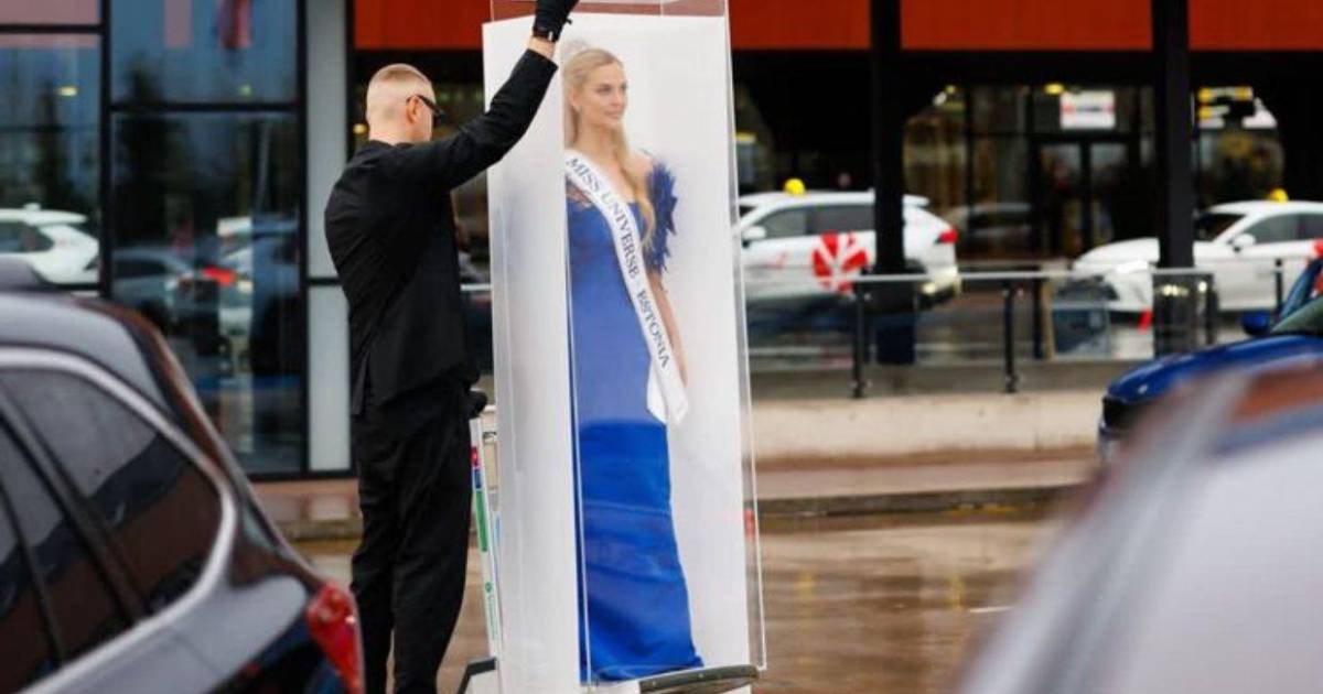 La representante de Estonia en Miss Universo 2025, Brigitta Schaback, acaparó la atención en redes sociales tras presentarse dentro de una caja transparente que simulaba el empaque de una muñeca Barbie.