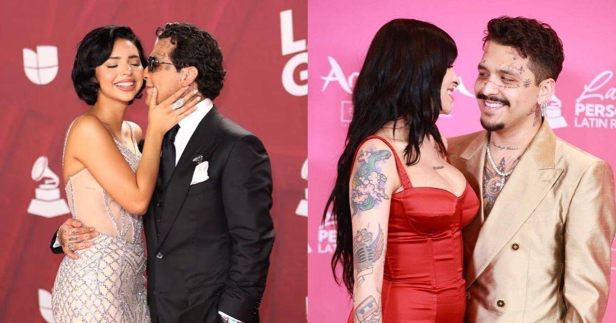 El mismo Cristhian Nodal, el mismo evento, pero un año después y con una pareja distinta. En los Grammys 2023, desfiló junto a su entonces pareja, Cazzu. Un año más tarde, en 2024, sorprendió al público al aparecer con su ahora esposa, Ángela Aguilar.