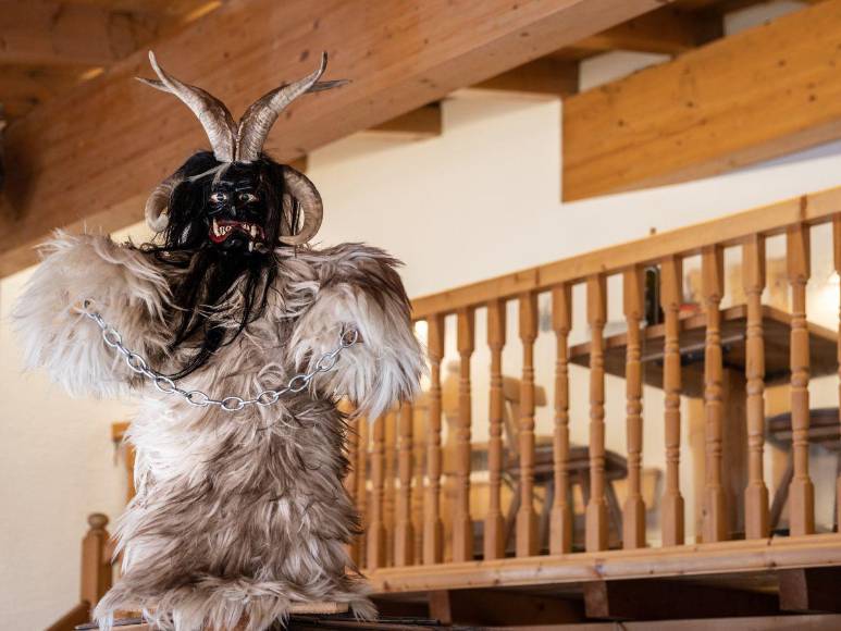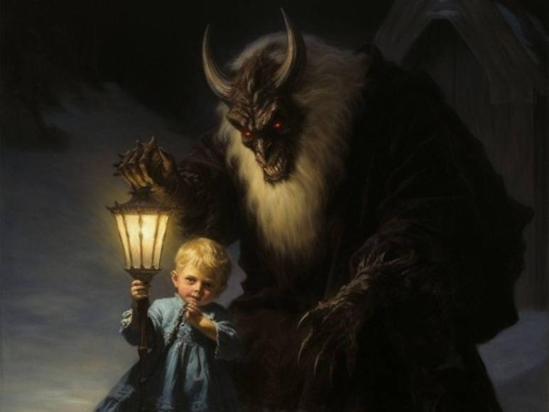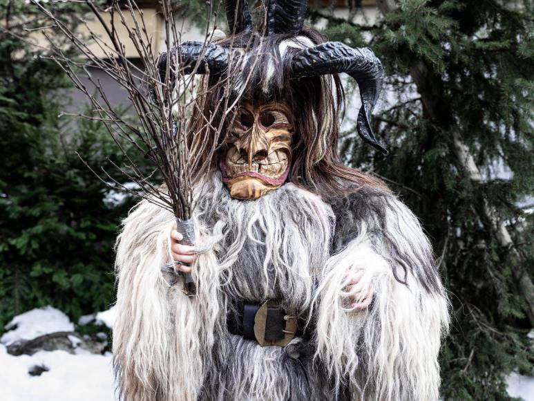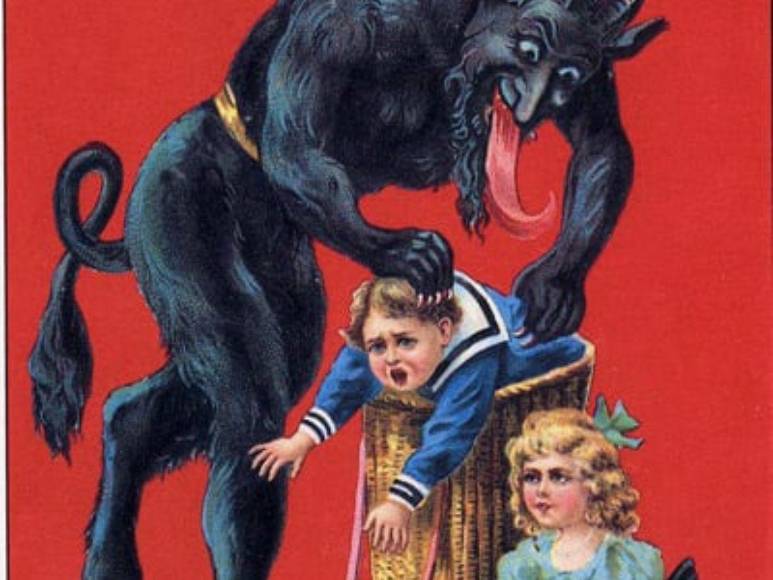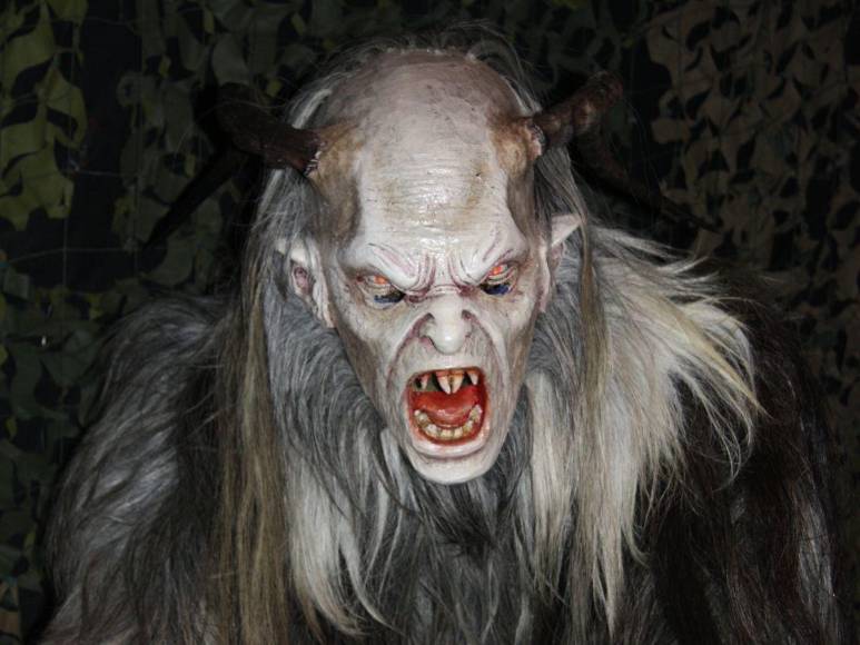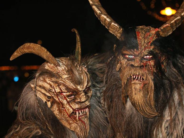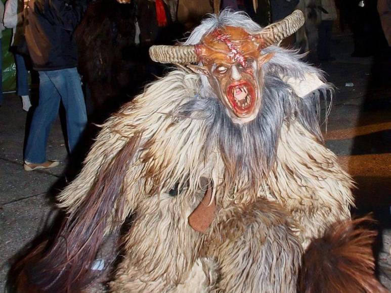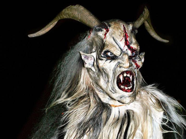 Krampus, una bestia con cuernos, pelo oscuro, colmillos y que es mitad cabra y mitad demonio es considerado el diablo de la Navidad que asusta niños que no se han portado bien durante el año.