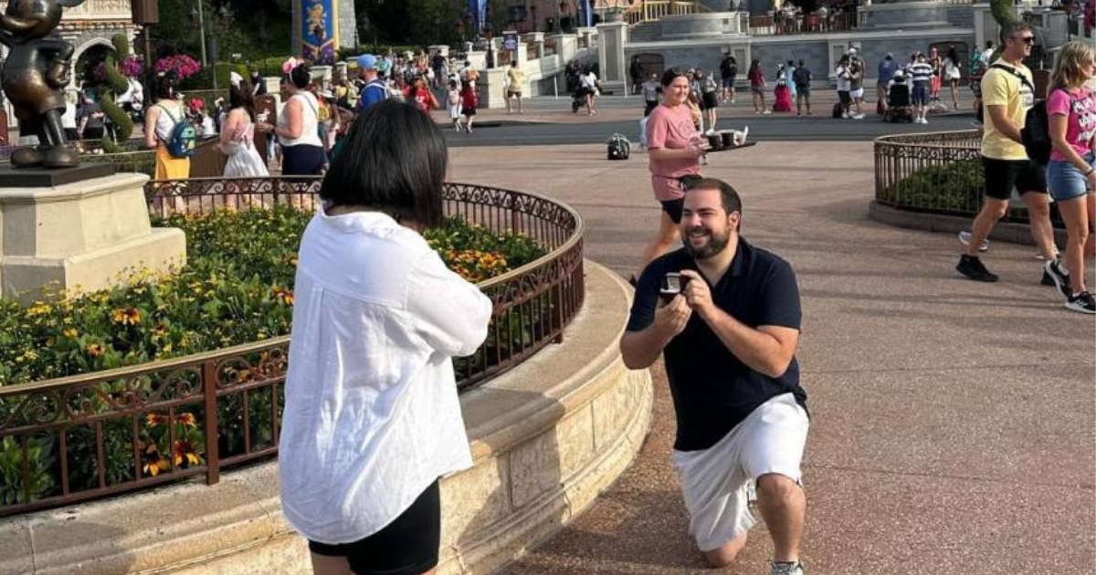 La guapa presentadora de televisión, Samantha Velásquez, fue sorprendida por su amorosa pareja, Carlos Melara, tras un viaje a Disney en Orlando, Florida.