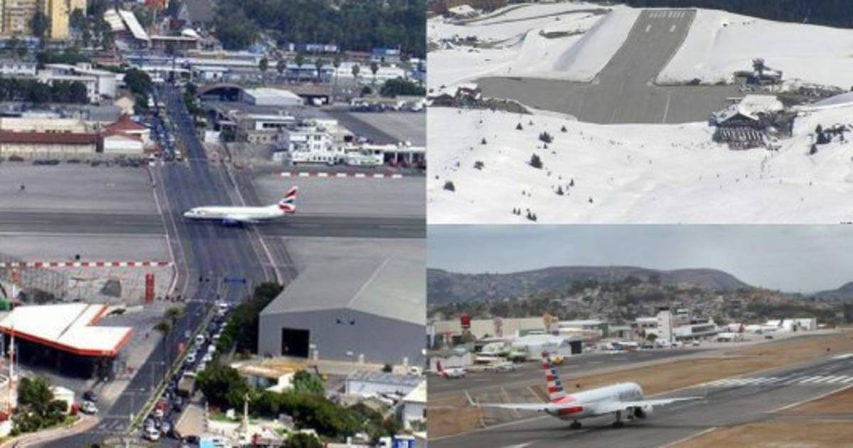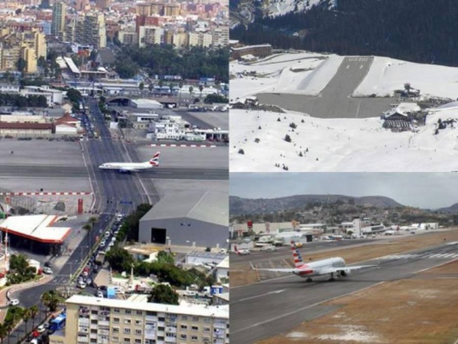 4. Aeropuerto de Gibraltar, España/Gran Bretaña. Es el único en el mundo en el que su pista de aterrizaje cruza una avenida por donde circulan autos, taxis y colectivos. Fue construido durante la Segunda Guerra Mundial e inaugurado en 1949, aunque en un principio solo servía como base de emergencia para el Ejército Británico. Foto AFP 22/05/2018 - 00:005 / 10 -