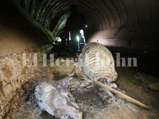 Dentro del túnel, que queda cercano al anillo periférico, fueron encontradas las osamentas de al menos 15 caballos. Algunos de ellos en estado de descomposición. 07/02/2018 - 00:004 / 12 -