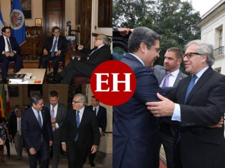 En esta imagen aparecen el canciller Lisandro Rosales, el mandatario hondureño y el Secretario General de la OEA. 13/08/2019 - 00:006 / 8 -
