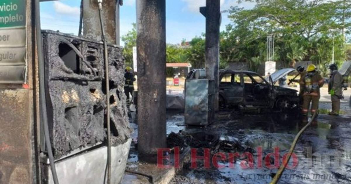 El sobrino del conductor del automotor contó que fueron a echar 500 lempiras de combustible pero cuando su tío decidió retroceder, impactó el carro contra una de las bombas. 04/08/2019 - 00:003 / 10 -
