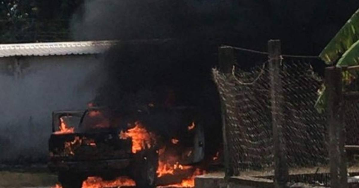 Sujetos desconocidos le metieron fuego a un vehículo tipo pickup en La Ceiba tras cometer un doble crimen. 19/03/2019 - 00:001 / 7 -