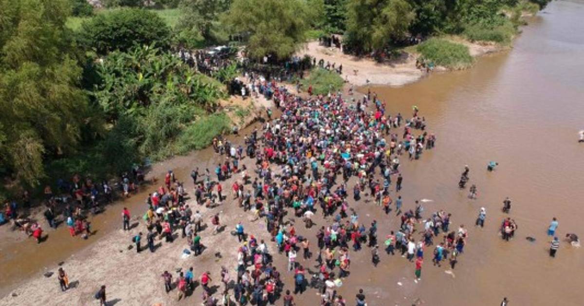 En el vídeo se observa a los migrantes flotando en medio del río, mientras mochilas, ropa y botellas con agua son arrastrados por la corriente. Foto: Agencia AFP 29/10/2018 - 00:009 / 11 -