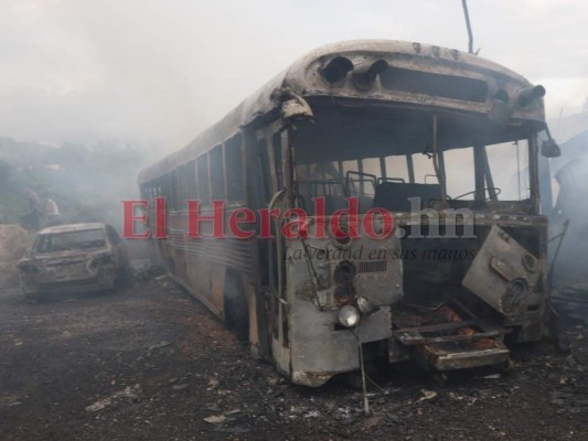 Un autobús está entre los 16 vehículos que quedaron dañados debido al fuego, solamente quedó la carrocería, debido que las llamas consumieron el interior. 13/10/2019 - 00:003 / 11 -