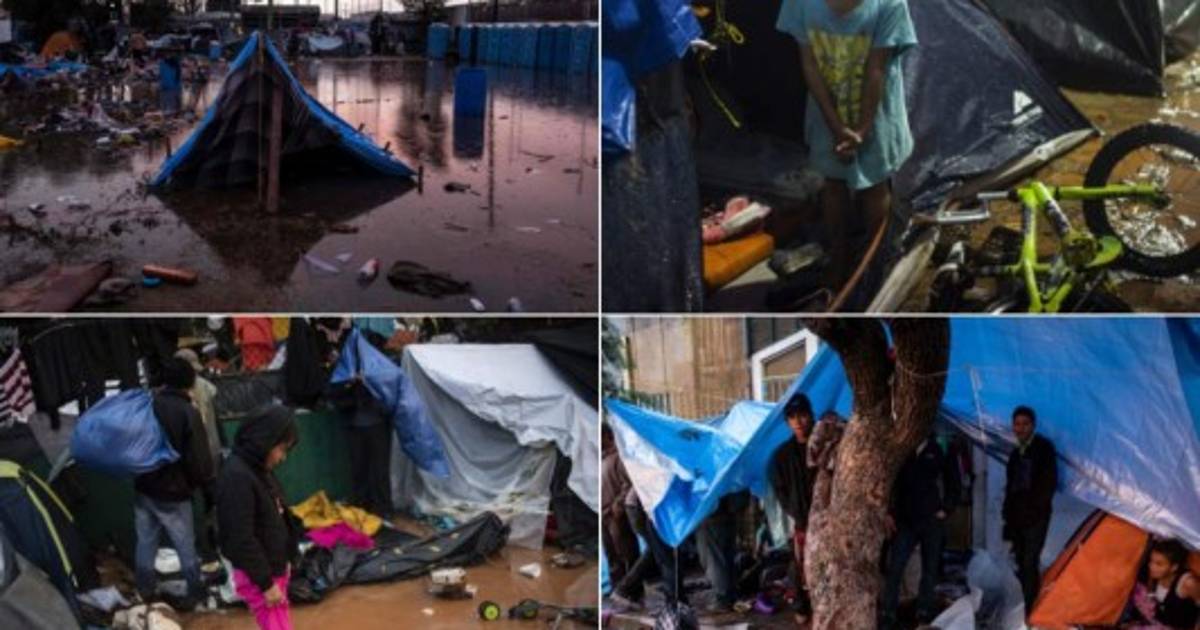 FOTOS: Fuerte lluvia destruye carpas en las que dormían migrantes de la caravana en Tijuana, México