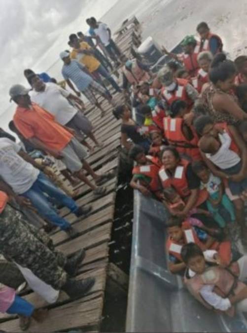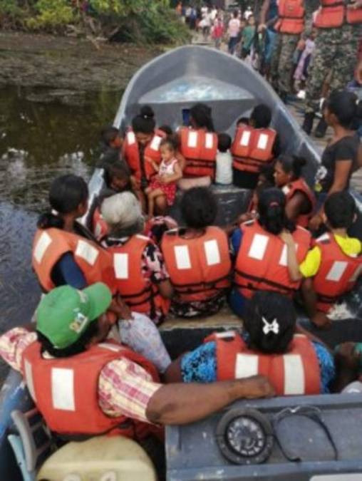 En la Mosquitia, las lluvias se comenzaron a sentir este domingo, por lo que desde horas muy tempranas comenzó la evacuación de familias. Foto: Twitter 15/11/2020 - 00:0010 / 15 -