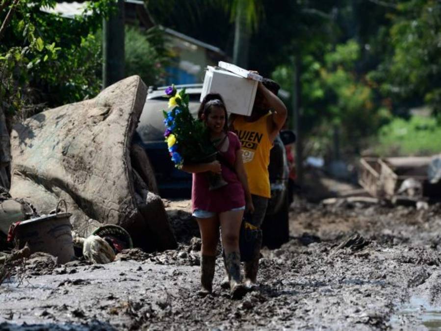 Muchos llegaron a sus viviendas, ya afectadas por Eta, para rescatar las pocas pertenencias que habían quedado a salvo antes de la llegada del huracán Iota. Foto: AFP